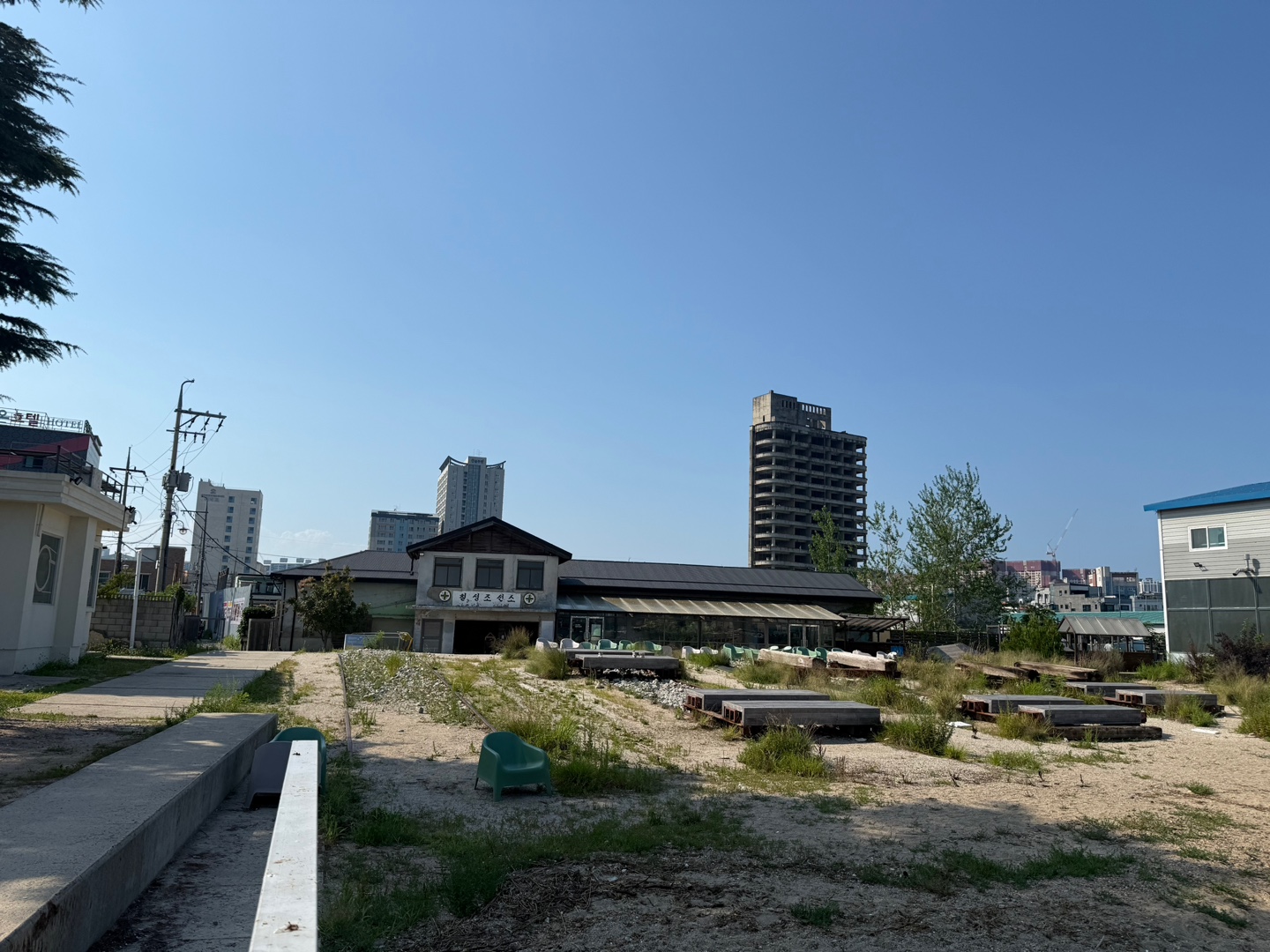 속초 여행에서 마음에 든 카페를 소개합니다. 옛 조선소 건물을 개조한 인더스트리얼 감성의 공간으로, 청초호를 한눈에 볼 수 있는 전망이 매력적인 칠성조선소입니다.